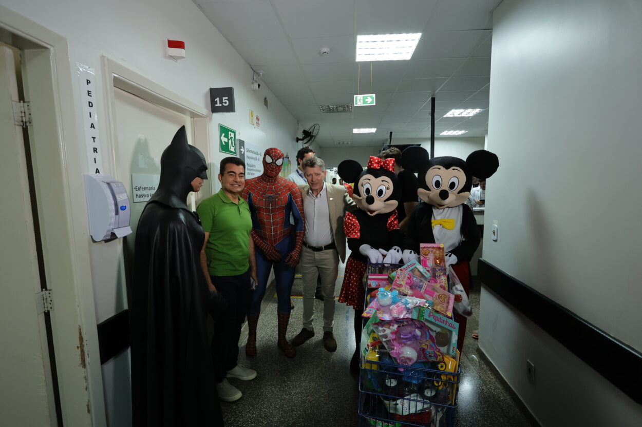 Acompanhados dos personagens “Batman”, “Homem-Aranha”, “Mickey” e “Minnie”, os voluntários percorreram os corredores do hospital, arrancando sorrisos e distribuindo esperança. Com carrinhos, bonecas, blocos de montar e músicas infantis, o ambiente se encheu de cores, risadas e encantamento.O prefeito Marçal Filho destacou a importância do gesto e o quanto pequenas ações podem transformar o dia das crianças. “É muito importante conseguirmos trazer um pouco mais de alento e diversão para essas crianças”, enfatizou. “Ver a magia e a esperança no semblante delas é algo que toca profundamente”, afirmou o prefeito.