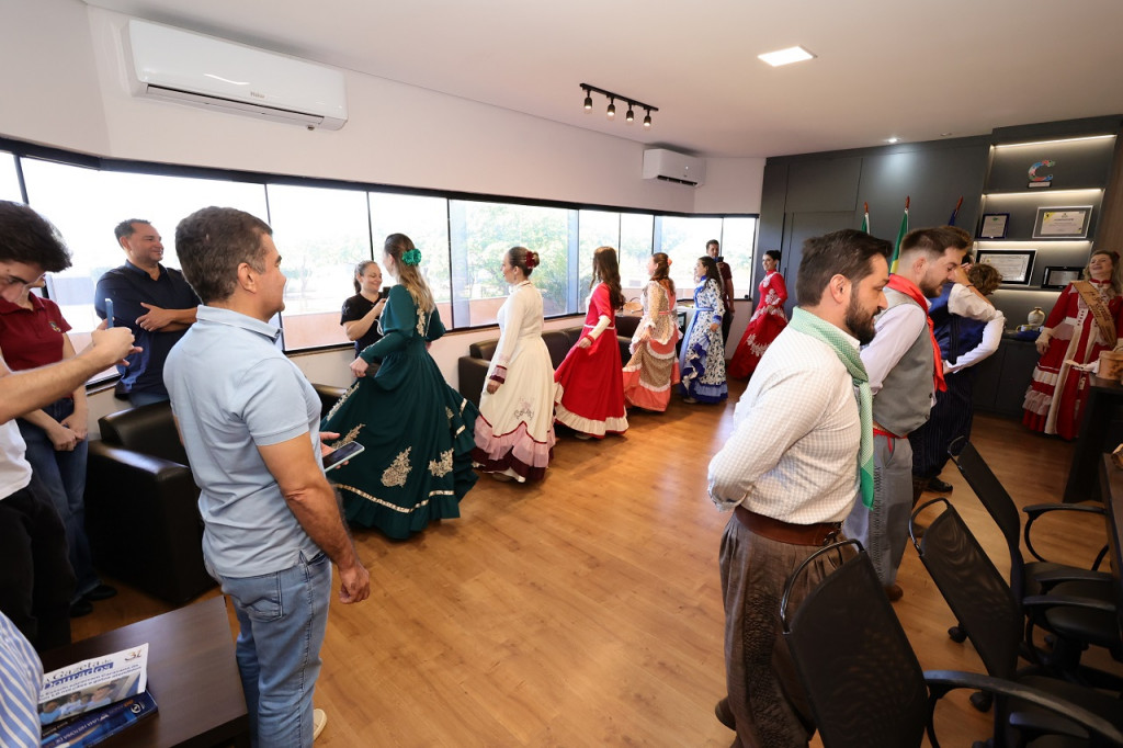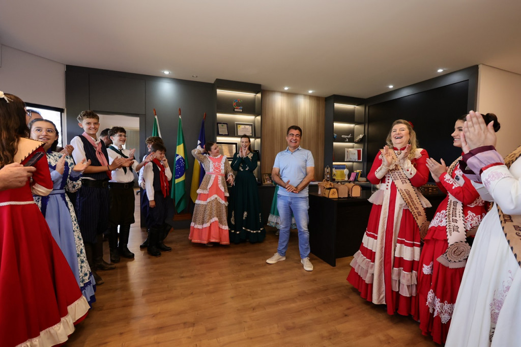 Durante a visita, os integrantes realizaram uma breve apresentação ao prefeito, que destacou a importância das tradições gaúchas para Dourados, para Mato Grosso do Sul e para o país. “É muito bom ver vocês representarem nossa cidade e manterem viva a cultura e a tradição gaúcha”, enfatizou. “A presença gaúcha tem papel fundamental no desenvolvimento e na história de Dourados”, completou Marçal, lembrando que o município celebrará 90 anos no dia 20 de dezembro.