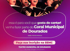 A Prefeitura de Dourados, através da SEMC (Secretaria de Cultura), abriu inscrições para o Coral Municipal de...