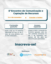 Nos dias 3 e 4 de novembro, acontece a 5ª edição do Encontro de Comunicação e Captação de Recursos. Promovido...